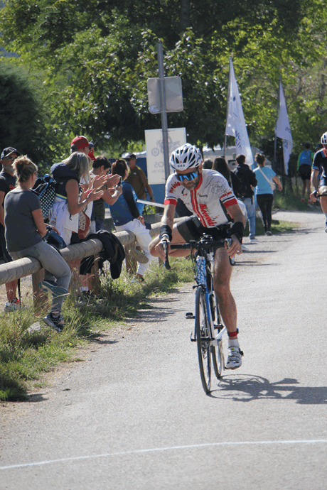 L’enchaînement est beaucoup plus facile. Un long faux plat descendant de 20km. Il faut jouer du gros mollet mais comme souvent, à la bataille avec les vélos aéro carbone, ce n’est pas moi qui gagne.