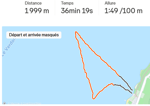 Au final, un rythme de 4min au kilomètre sur les 10km qui a confirmé ma bonne forme 1 semaine auparavant dans les Gorges du Verdon.