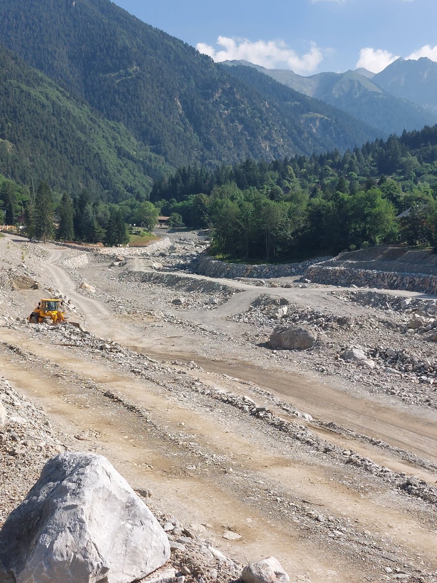 Même les engins de chantier paraissent tout petit dans le décor. Et ils sont nombreux à s’activer pour redonner vie à cette vallée meurtrie.