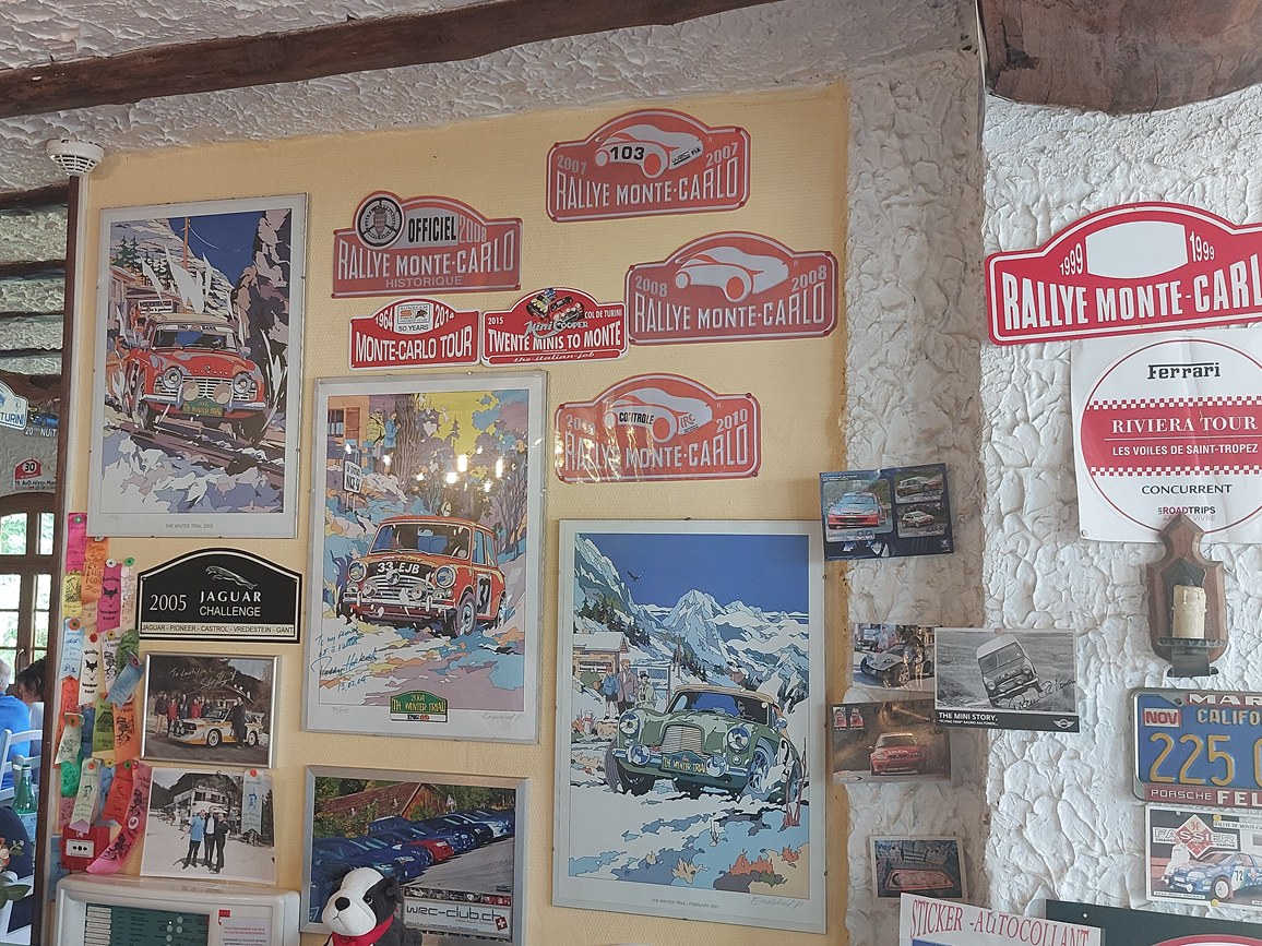 En haut du col, un attroupement de belles mécaniques, de richissimes Monégasques venus déjeuner à l’hôtel des 3 vallées en Lamborghini.